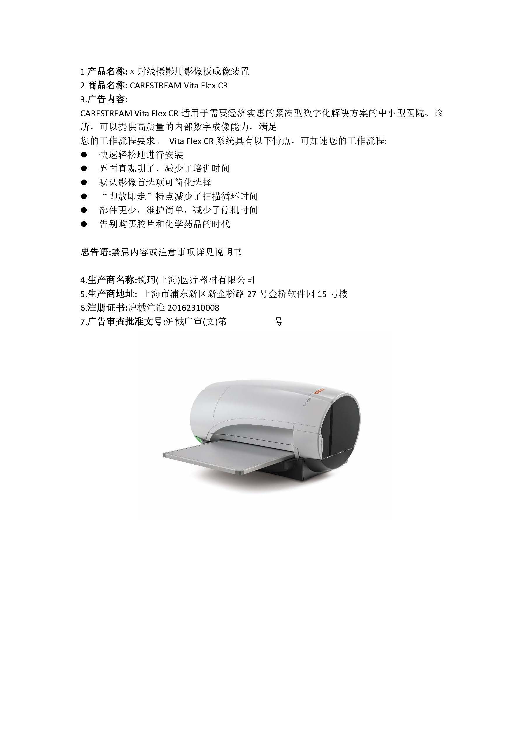 锐珂(上海)医疗器材有限公司X射线摄影用影像板成像装置广告批准