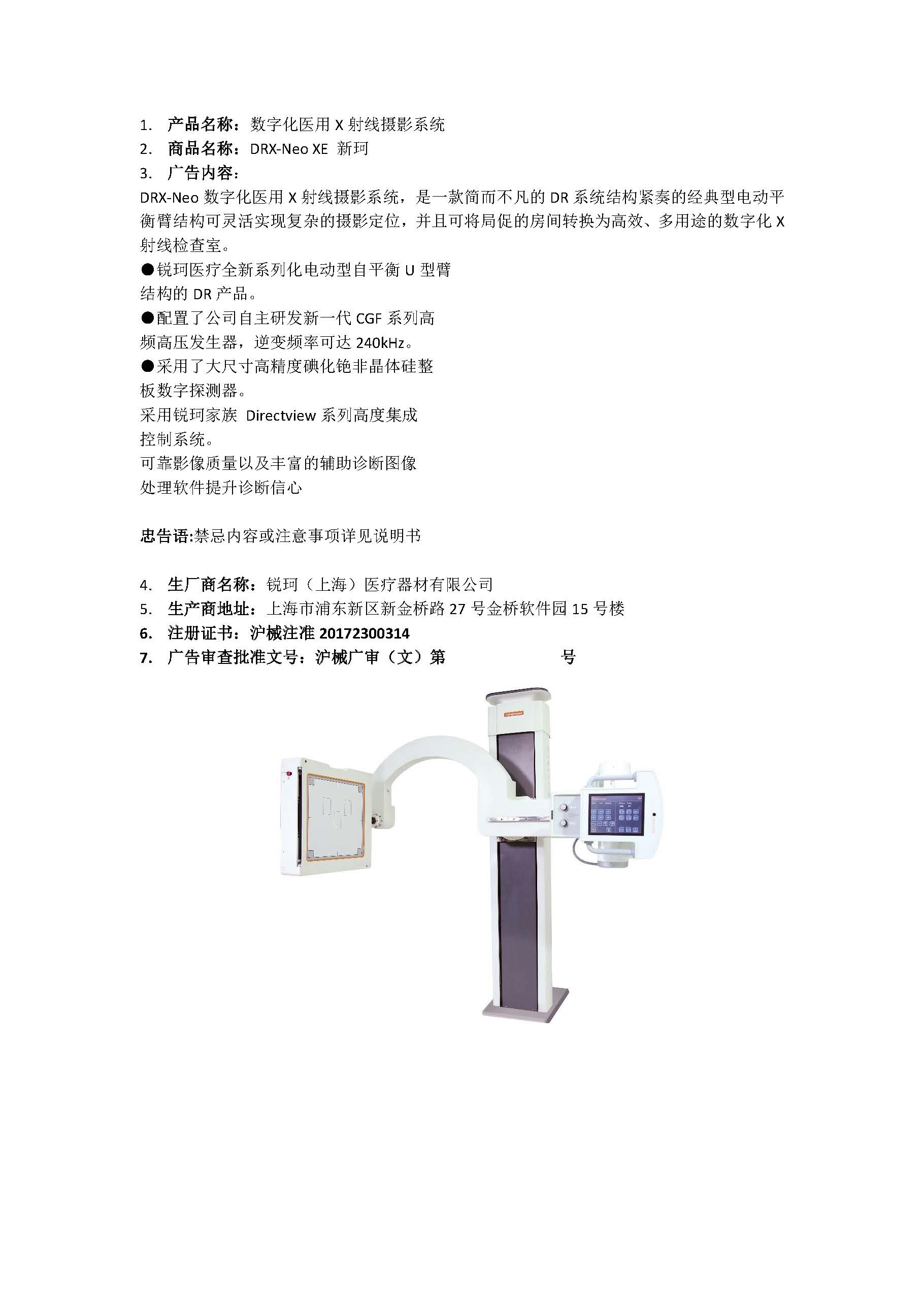 锐珂(上海)医疗器材有限公司数字化医用X射线摄影系统广告批准