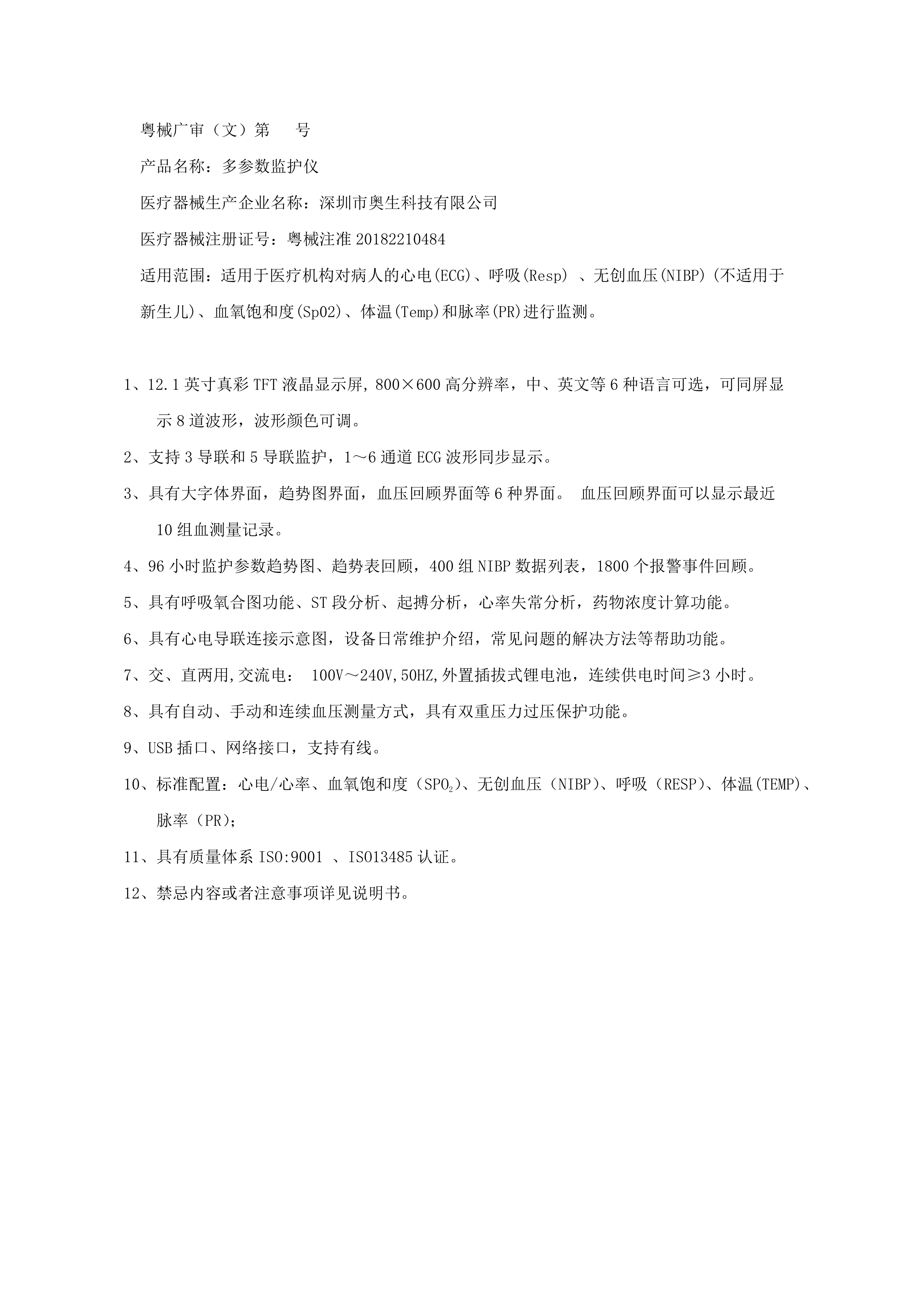 深圳市奥生科技有限公司多参数监护仪广告批准